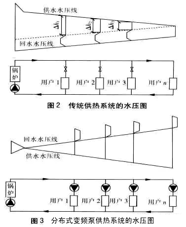 分布式變頻泵供熱系統(tǒng)的應(yīng)用: 傳統(tǒng)的集中供熱系統(tǒng)很容易形成冷熱不均現(xiàn)象。由于近端用戶出現(xiàn)過多的供回水壓差,在缺乏有效調(diào)節(jié)手段的情況下,近端用戶很難避免流量超標(biāo),這必然造成遠(yuǎn)端用戶流量不足,形成供熱系統(tǒng)冷熱不均現(xiàn)象。同時,供熱系統(tǒng)的遠(yuǎn)端易出現(xiàn)供回水壓差過小,即用戶供回水壓差不足現(xiàn)象。在這種情況下,為改善供熱效果,須提高遠(yuǎn)端用戶的用戶入口供回水壓差,往往采用加大循環(huán)泵和(或)在末端增設(shè)加壓泵的做法,但這易使供熱系統(tǒng)流量超標(biāo),進(jìn)而形成大流量小溫差的運(yùn)行方式。 另外傳統(tǒng)供熱系統(tǒng)中大多數(shù)近端用戶采用調(diào)節(jié)閥消耗了多余的用戶入口供回水壓差,熱源循環(huán)泵提供的部分動力實(shí)際上被無功消耗。分布式變頻泵供熱系統(tǒng)采用分段接力循的方式共同實(shí)現(xiàn)供熱介質(zhì)的輸送。雖然兩種供熱系統(tǒng)的一二級管網(wǎng)阻力相等,但這二種方式循環(huán)泵所需的功率卻不同。 傳統(tǒng)供熱系統(tǒng)由于循環(huán)泵設(shè)置在熱源處,提供的動力按熱網(wǎng)大流量設(shè)計(jì)。分布式變頻泵供熱系統(tǒng)的熱源循環(huán)泵只須克服熱源內(nèi)部阻力,克服外網(wǎng)阻力依靠沿途分布的循環(huán)泵實(shí)現(xiàn)。供熱信息網(wǎng)了解到雖然分布式變頻泵供熱系統(tǒng)采用較多的循環(huán)泵,但各個循環(huán)泵的功率卻減少了。 采用分布式變頻泵供熱系統(tǒng),熱源循環(huán)泵、一級循環(huán)泵、二級循環(huán)泵提供的能量,均在各自的行程內(nèi)有效地被消耗掉,因此沒有無效的電耗。由于各用戶負(fù)荷變化的不一致性,可調(diào)節(jié)循環(huán)泵的轉(zhuǎn)速以滿足熱網(wǎng)運(yùn)行需求,在滿足負(fù)荷運(yùn)行時,可以靠溫控閥來調(diào)節(jié),系統(tǒng)無功消耗減小,運(yùn)行費(fèi)用降低。 1對于已經(jīng)建成并運(yùn)行大型熱網(wǎng),當(dāng)供熱負(fù)荷超過原有負(fù)荷時,宜在熱網(wǎng)遠(yuǎn)端選擇一些用戶設(shè)置分布式變頻泵,以改善供熱質(zhì)量,而不必提高熱源循環(huán)泵的揚(yáng)程,對于已建成的熱源、熱網(wǎng)實(shí)際運(yùn)行工況比較復(fù)雜,若控制水平不到位,很難達(dá)到理想的節(jié)能運(yùn)行效果。因此不建議將已建大型供熱系統(tǒng)全面改造為分布式變頻泵供熱系統(tǒng)。可以分期分批逐步完成熱網(wǎng)技能改造。 2對于分布式變頻泵供熱系統(tǒng)無論從設(shè)計(jì)還是運(yùn)行上,各臺循環(huán)泵的流量、揚(yáng)程都必須精確計(jì)算和控制。 3為達(dá)到佳供熱運(yùn)行效果,分布式變頻泵供熱系統(tǒng)必須結(jié)合熱網(wǎng)監(jiān)控系統(tǒng)實(shí)時數(shù)據(jù)上線。 4分布式變頻泵供熱系統(tǒng)在熱源循環(huán)泵選擇、系統(tǒng)壓力設(shè)定、流量計(jì)算等,在實(shí)際工程應(yīng)用時要進(jìn)行綜合技術(shù)比較,結(jié)合實(shí)際情況才能做到優(yōu)化。 熱力工況調(diào)節(jié)主要有質(zhì)調(diào)節(jié)(即定流量調(diào)節(jié))、質(zhì)量并調(diào)(變流量調(diào)節(jié))等方法。質(zhì)調(diào)節(jié)只調(diào)節(jié)一、二次網(wǎng)的供、回水溫度。質(zhì)量并調(diào)則既調(diào)節(jié)一、二次網(wǎng)的供回水溫度,又調(diào)節(jié)一、二次網(wǎng)的循環(huán)流量。質(zhì)調(diào)節(jié)簡單易操作,但不節(jié)電。質(zhì)量并調(diào)不但節(jié)電,而且從室內(nèi)系統(tǒng)消除垂直失調(diào)而言,是佳的調(diào)節(jié)方法。 分布式供熱與傳統(tǒng)供熱系統(tǒng)對比: 傳統(tǒng)的循環(huán)水泵設(shè)計(jì)方法是根據(jù)遠(yuǎn)、不利用戶選擇循環(huán)水泵,并設(shè)置在熱源處,用于克服熱源、熱網(wǎng)和熱用戶系統(tǒng)阻力。這種傳統(tǒng)設(shè)計(jì)在供熱系統(tǒng)的近端(靠近熱源處)熱用戶,形成了過多的資用壓頭。為了滿足近端熱用戶循環(huán)流量,必須設(shè)置流量調(diào)節(jié)閥,將多余的資用壓頭消耗掉。這種無謂的節(jié)流損失是傳統(tǒng)循環(huán)水泵設(shè)計(jì)方法本身造成的。而采用分布式變頻循環(huán)泵系統(tǒng),無論是熱源主循環(huán)泵、一級循環(huán)泵、二級循環(huán)泵所提供的電功率,全部在各自的行程內(nèi)有效地被消耗掉,而沒有無效的電耗。 傳統(tǒng)循環(huán)系統(tǒng)中大多數(shù)用戶采用調(diào)節(jié)閥消耗了多余資用壓頭,熱源主循環(huán)泵的總功率實(shí)際上被無功消耗。其總功率N消耗肯定大于分布循環(huán)方式的總功率N,。分布循環(huán)方式是在熱源處設(shè)置揚(yáng)程較小的循環(huán)水泵外,還在外網(wǎng)用戶端設(shè)置一級循環(huán)泵。多個沿途一級循環(huán)泵,采用“分段接力循環(huán)”的方式共同實(shí)現(xiàn)了熱媒的輸送工作。雖然各外網(wǎng)管段的壓降與傳統(tǒng)方案對應(yīng)管段的壓降相等,但這二個方式所需的功率N卻是不同的。 傳統(tǒng)方式因循環(huán)水泵設(shè)置在熱源處,所提供的動力是按總的大循環(huán)流量下設(shè)計(jì)的,而分布變頻設(shè)計(jì)方式,熱源處的循環(huán)泵在總流量下,只須克服熱源內(nèi)部阻力,克服外網(wǎn